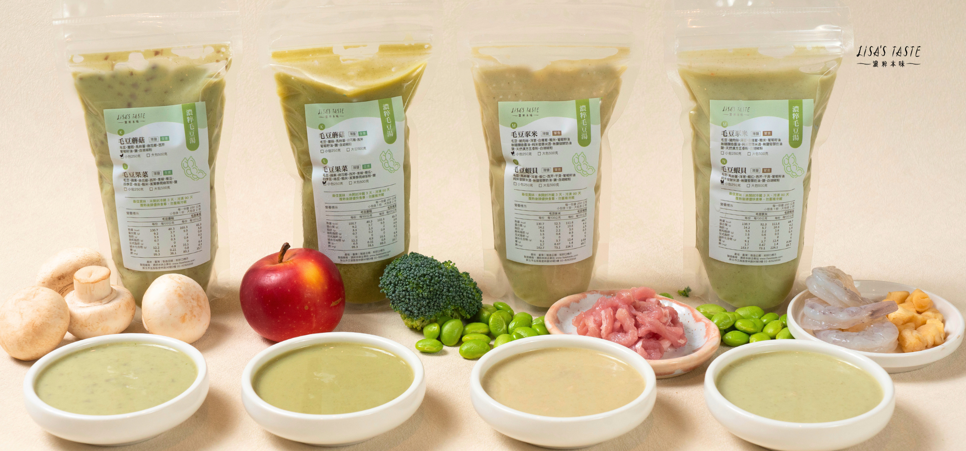 濃粹本味堅持真實地「呈現食物的原始風味」,嚴選全天然食材、全手工製作,推出四款低卡高纖的濃湯 —— 溫潤毛豆、清爽玉米、濃郁芋頭、酸甜蕃茄 —— 共 14 種口味。有葷有素、有鹹有甜。